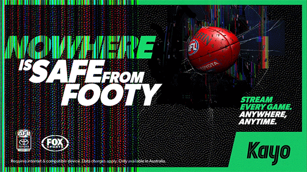 With Kayo, watching footy is never out of reach. “There’s Nowhere Safe From Footy” played on the idea that when every game is in your pocket, the sport can turn up in the most unexpected places. The campaign exaggerated just how easy it is to stream, reminding fans that wherever they are, so is the footy.